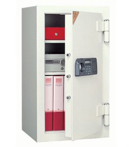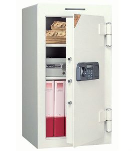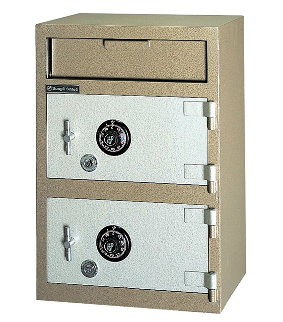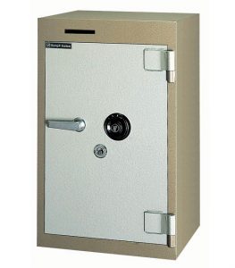 Even though the door of the safe is locked, deposit can be made via t top front loading deposit door, offering instant protection from hold-up or burglary. Protected by anti-fish baffles.
